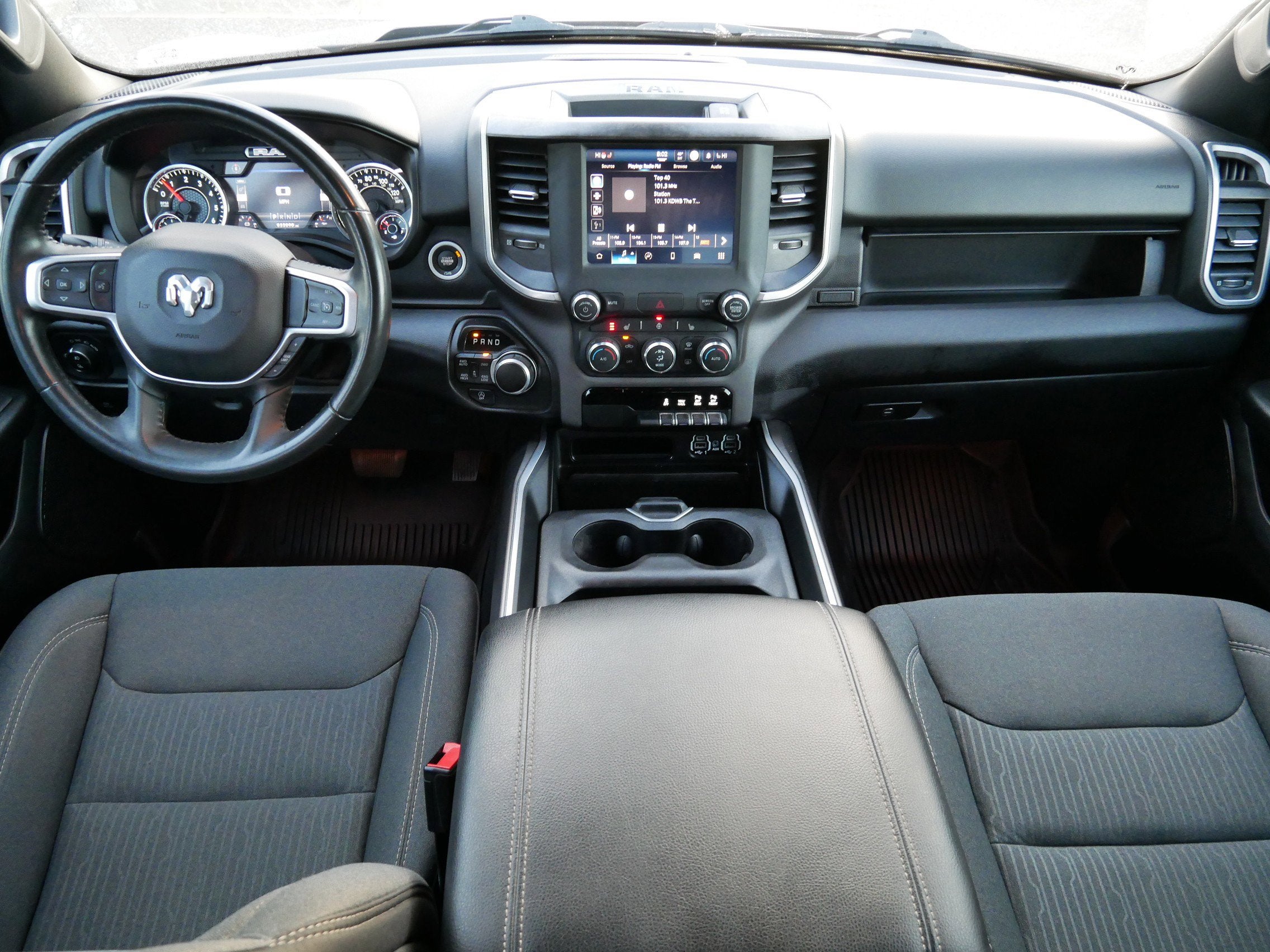 Big Horn Level 2 Equipment Group, Black Exterior Mirrors, Black Premium Power Mirrors, Bluetooth® Handsfree Phone & Audio, Class IV Receiver Hitch, Cluster 7.0" TFT Color Display, Connectivity - US/Canada, Convex Wide-Angle Mirror Insert, Exterior Mirrors Courtesy Lamps, Exterior Mirrors w/Heating Element, Exterior Mirrors w/Supplemental Signals, For Details, Visit DriveUconnect.com, Global Telematics Box Module (TBM), Glove Box Lamp, Google Android Auto, GPS Antenna Input, Heated Front Seats, Heated Steering Wheel, Integrated Center Stack Radio, Media Hub w/2 Charge Only USBs, ParkSense Front/Rear Park Assist w/Stop, Power 2-Way Driver Lumbar Adjust, Power 8-Way Driver Seat, Power Adjustable Pedals, Power-Folding Mirrors, Quick Order Package 23Z Big Horn, Radio: Uconnect 5 W w/8.4" Display, Rear Dome w/On/Off Switch Lamp, Rear Power Sliding Window, Rear Window Defroster, Remote Start System, Security Alarm, SiriusXM Radio Service, SiriusXM Satellite Radio, Sun Visors w/Illuminated Vanity Mirrors, Universal Garage Door Opener, USB Host Flip.