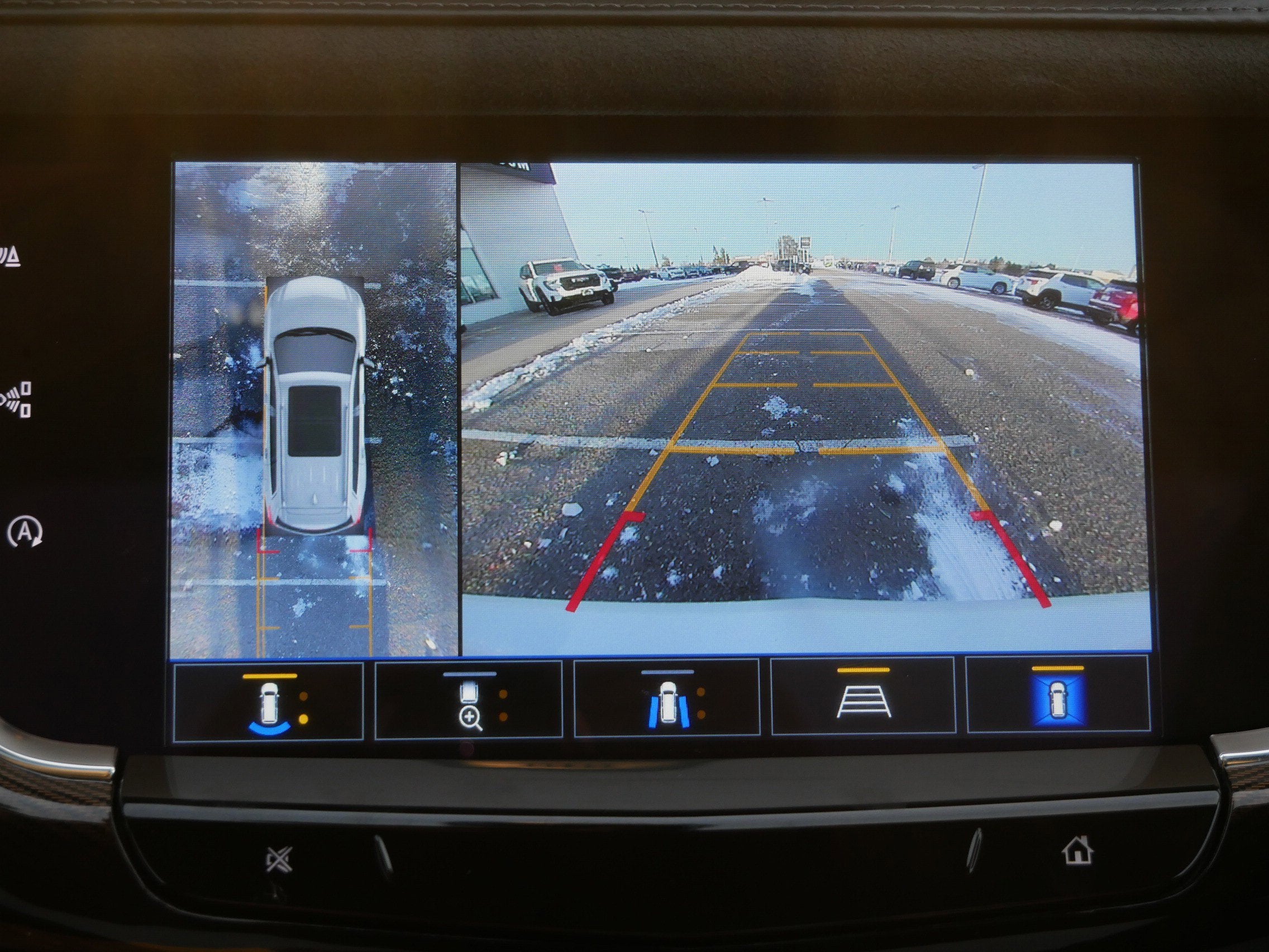 - Selectable front and rear dynamic guidelines laid over the display image assist in parking maneuvers by showing the vehicle's path